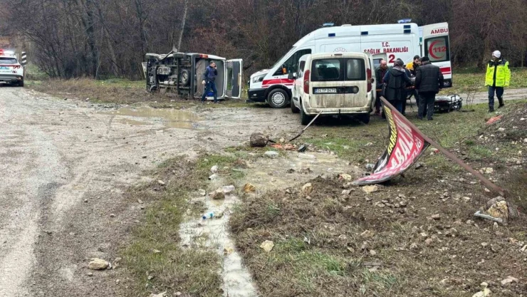 Bolu'da yağışlı havada kontrolden çıkan bir minibüs, yol kenarına devrildi. Meydana gelen kazada 2 kişi yaralandı.