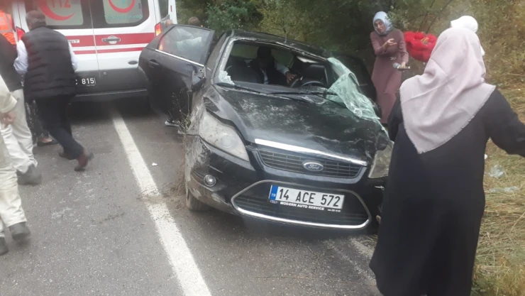 Bolu'nun Mudurnu ilçesinde yağış dolayısıyla kayganlaşan zeminde kontrolden çıkan otomobil şarampole devrildi. Kazada yaralanan 2 kişi hastaneye kaldırıldı.