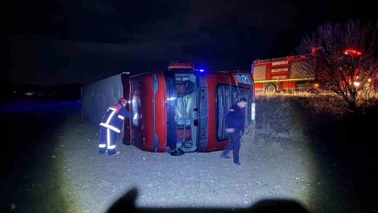 Çorum'un Sungurlu ilçesinde yola aniden çıkan köpeğe çarpmamak için sürücünün manevra yapması neticesinde savrulan tır şarampole devrildi. Kazada tır sürücüsü yaralandı.