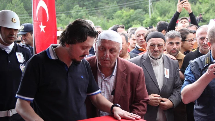 ŞEHİT EŞİNİNİN FERYADI YÜREKLERİ DAĞLADI Mardin'de hain terör saldırısı sonrası şehit olan 6 aylık hamile Polis Memuru Şerife Özden Sütçü Kalmış'ın cenaze namazını, kayınbabası emekli imam Selahattin Kalmış kıldırdı. Cenaze namazı öncesinde İl Müftüsü Osman Aydın, Evliyalar Şehri olan Kastamonu'da, Kurtuluş Savaşı'nda en çok şehit veren Araç'ın bir şehidini daha uğurladığına dikkat çekerek 'Şehidimiz, bizim...