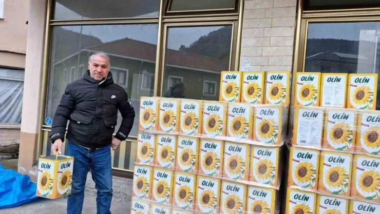 Zonguldak'ın Devrek ilçesi Özbağı Köyü Muhtarı Aziz Hızarcı 250 kişiye sıvı yağ hediyesinde bulundu.