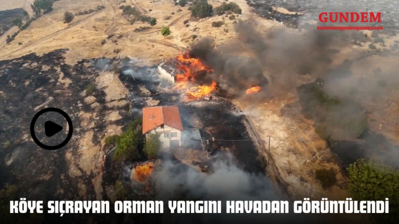 Kastamonu’nun Araç ilçesinde ormanlık alanda çıkan yangının sıçradığı köy havadan görüntülendi.