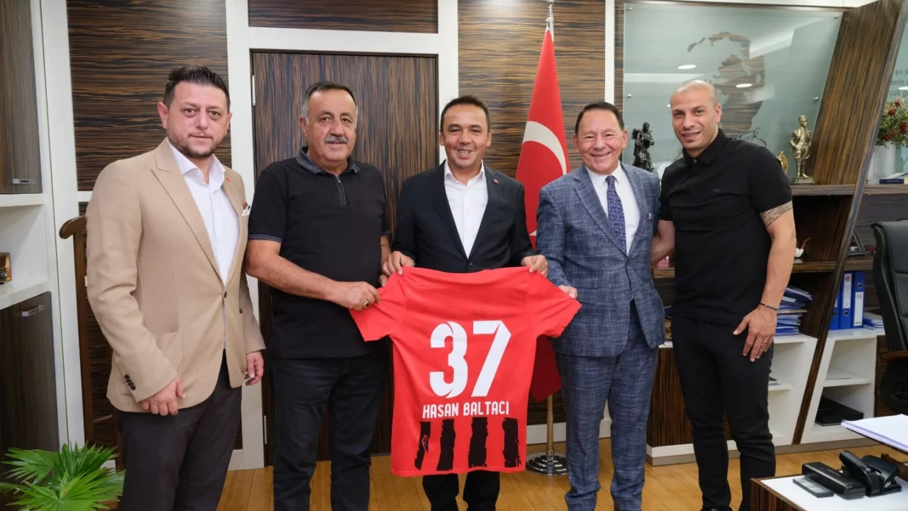 Belediye Başkanı Hasan Baltacı; “Nazik ziyaretleri için değerli yöneticilerimize teşekkür ediyor, şehrimizin ortak değeri olan takımımıza galibiyetlerle dolu bir sezon diliyorum” dedi.