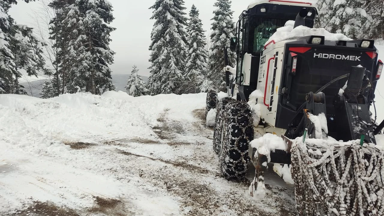 Kastamonu’nun Küre ilçesinde etkili olan kar yağışı nedeniyle köy yollarında ulaşımın aksamaması için karla mücadele çalışmaları aralıksız devam ediyor.