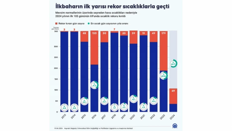 Çevre, Şehircilik ve İklim Değişikliği Bakanlığı Meteoroloji Genel Müdürlüğü verilerinden derlenen bilgilere göre, Türkiye genelinde 1991-2020 arasında 7,7 derece olarak ölçülen mart ayı ortalama sıcaklığı, geçen ay 9,2 derece ile mevsim normallerinin 1,5 derece üzerinde oldu. Ay içinde ortalama sıcaklıklar Trakya, Marmara Bölgesi'nin batı kıyıları, İstanbul, Ege Bölgesi'nin kıyı kesimleri, Akdeniz Bölgesi'nin batı ve orta kesimleri ile Çankırı, Ankara Polatlı, Kızılcahamam, Nallıhan, Beypazarı, Eskişehir Sivrihisar, Bartın, Sinop, Trabzon, Düzce, Samsun Bafra ve Ağrı çevrelerinde mevsim normallerinin üzerinde, yurdun diğer bölgelerinde mevsim normalleri civarında ölçüldü. Geçen ay en düşük sıcaklık sıfırın altında 22,3 derece ile Van'ın Özalp ilçesinde, en yüksek sıcaklık ise 31,9 derece ile Adana'da kaydedildi.