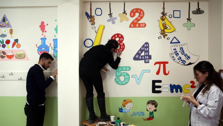 Üniversite öğrencisi Aleyna Atalar ise projede arkadaşlarına destek olduğunu belirterek, “İlk olarak 4. sınıf öğrencilerimizle sanat atölyesi gerçekleştirdik. Öncelikle çocukların hayalindeki sınıfı çizmelerini istedik. Bu çizilen resimlere göre duvarları resmettik. Amacımız çocukların hayal dünyasını geliştirmek, sanatla iç içe büyümelerini sağlamak” dedi.
