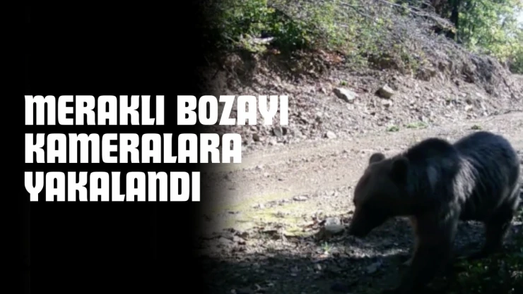 Kastamonu'da ormanlık alana yerleştirilen fotokapanı fark ederek yerinden almaya çalışan bozayı kameraya yansıdı.