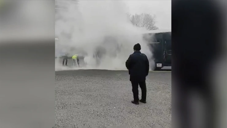 Yolcular tahliye edilirken yangın İETT personelinin müdahalesiyle söndürüldü.