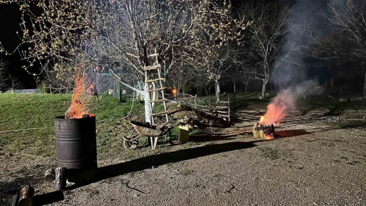 Karabük’ün Ovacık ilçesinde bir vatandaş, Meteoroloji Genel Müdürlüğü’nün zirai don uyarısının ardından meyve ağaçlarını korumak için ateş yakarak önlem aldı.
