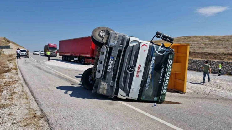 Çorum'un Alaca ilçesinde, kontrolden çıkan mıcır yüklü kamyonun devrildiği kazada sürücü yaralandı.