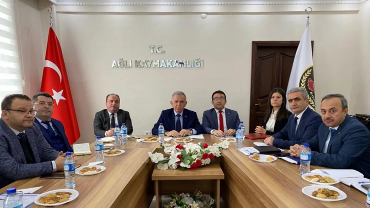 İl Milli Eğitim Müdürü Cengiz Bahçacıoğlu başkanlığında Ağlı'da, İlçe Milli Eğitim Müdürleri ile değerlendirme toplantısı gerçekleştirildi. Taşıma pansiyon yemekleri, okul öncesi beslenme, köy yaşam merkezleri, bağımlılıkla mücadele, ders kitabı seçimi, yakacak alımları, promosyon iş ve işlemleri, kayıtsız öğrenciler ve gündeme ilişkin diğer konuların görüşüldüğü toplantıya, Müdür Yardımcısı Serkan Demirkıran, Şube Müdürleri Cemalettin İpek, Halil İbrahim...
