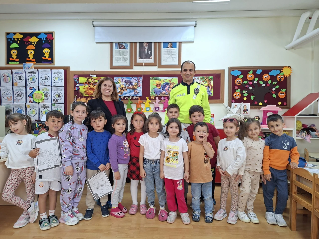 Bu kapsamda, Trafik Tescil ve Denetleme Şube Müdürlüğü personeli tarafından Candaroğulları İlkokulu’nda eğitim gören anasınıfı öğrencilerine yönelik "Trafik Dedektifleri Eğitimi" düzenlendi.