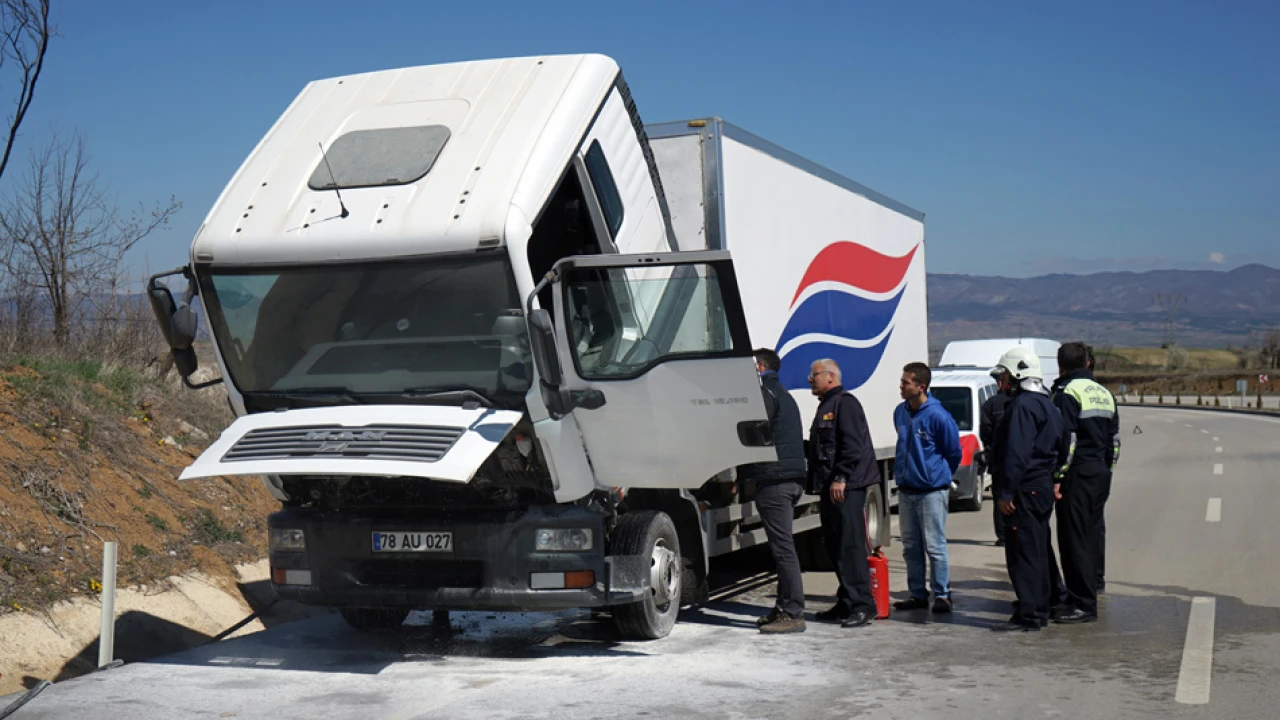 Edinilen bilgiye göre, Doğu Çevre Yolu’nda Kemal K. idaresindeki 78 AU 027 plakalı kamyonun, seyir halinde iken motor kısmı alev aldı. Kamyonu sağa çekerek yangına müdahale eden sürücü, aynı zamanda itfaiye ekiplerini arayarak yardım istedi. Olay yerine gelen itfaiye ekipleri, kamyonun motor kısmında çıkan yangın büyümeden söndürdü. Kamyonda maddi hasar oluştu.