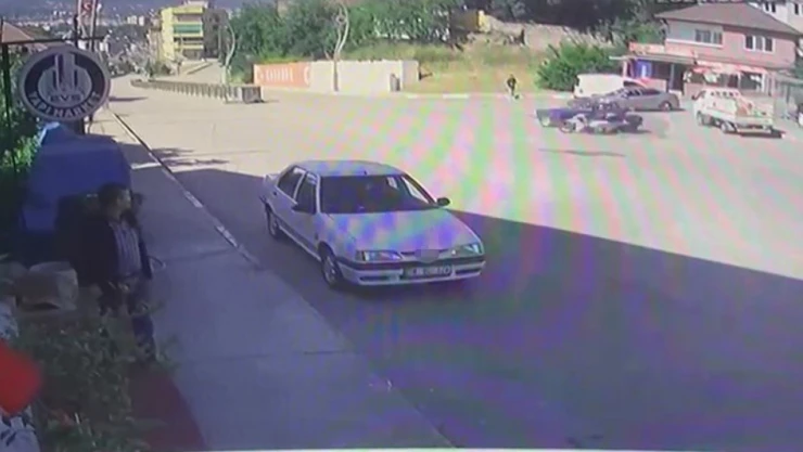 Motosiklet ile Otomobilin Çarpıştığı Kaza Kameraya Yansıdı