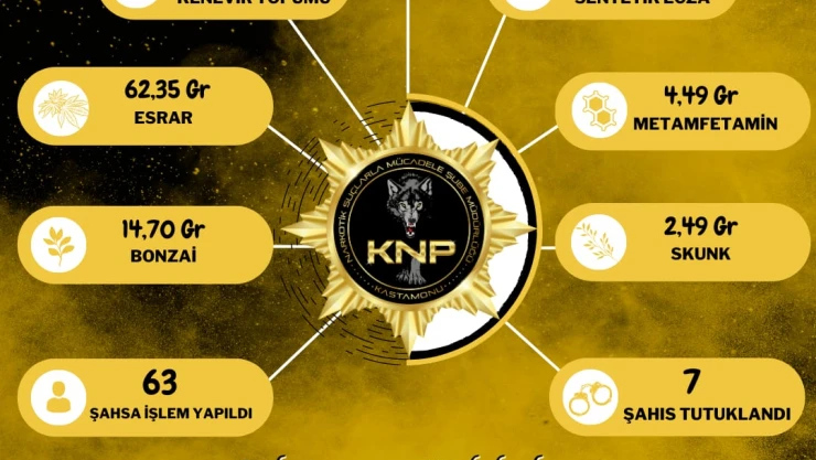 İl Emniyet Müdürlüğü, Ocak ayı içerisinde Narkotik Suçlarla Mücadele Şube Müdürlüğü tarafından gerçekleştirilen çalışmaların detayları paylaşıldı. İl Emniyet Müdürlüğü tarafından paylaşılan verilere göre; Narkotik Suçlarla Mücadele Şube Müdürlüğü tarafından Ocak ayında uyuşturucuyla mücadele kapsamında gerçekleştirilen çalışmalarda 7 bin 800 gram bazmorfin, 4,29 gram kenevir tohumu, bin 70 adet sentetik ecza, 62,35 gram esrar, 4,49 gram metamfetamin, 14,70 gram bonzai, 2,49 gram skunk ele geçirildi. Gerçekleştirilen operasyonlarda gözaltına alınan 63 şahıstan 7’si çıkarıldıkları mahkemece tutuklandı. E.P.