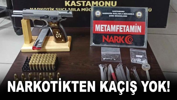 Edinilen bilgiye göre; Narkotik Suçlarla Mücadele Şube Müdürlüğü ekiplerinin çalışmaları sonucunda şüpheli bir şahsın aracında ve üzerinde yapılan aramalarda; 0,72 gram metamfetamin, 10 adet cam düzenek, 1 adet tabanca, 1 adet şarjör ve 51 adet tabanca fişeği ele geçirildi. Şüpheli şahıs gözaltına alınırken, ayrıca şahsa uyuşturucu etkisinde araç kullanmaktan toplam 33 bin 240 TL idari para cezası uygulandı.