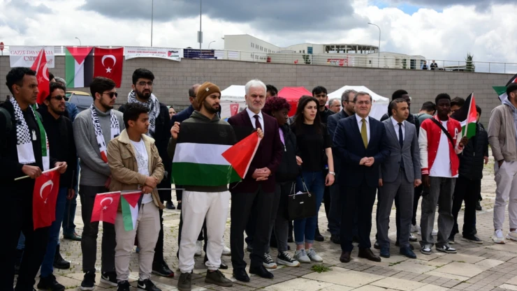 Anma etkinliğinin açılışında konuşan İktisadi ve İdari Bilimler Fakültesi Uluslararası İlişkiler Bölümü öğrencileri Saja Eshtaya ve Farah Ali Hassan, İsrail'in Filistin'de gerçekleştirdiği ihlal ve katliamların, 14 Mayıs 1948'de Filistin topraklarında işgal devletinin kuruluşunu ilan etmesiyle daha da şiddetlendiğini belirtti. Bu tarihin, Filistinliler için "en-Nakba" olarak adlandırılan büyük bir felaketi simgelediğini ifade etti. Nekbe'nin, 500'den fazla köyün İsrail tarafından yerle bir edilmesi ve 800 bin Filistinlinin kitlesel göçüyle sonuçlanan bir olay olarak tarihlerde yer aldığını vurgulayan öğrenciler, 15 Mayıs tarihinin Nekbe'nin yıldönümü olarak anıldığını ve dünya genelinde milyonlarca kişinin Filistin halkına destek olmak için bir araya geldiğini belirtti.