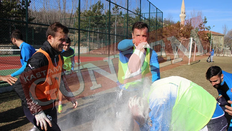 Kastamonuspor 1966’nın devre arasında kadrosuna dahil ettiği Taner Yalçın, bir klasik haline gelen un-yumurta ikilisinden kurtulamadı. Kastamonuspor 1966’nın 1990 doğumlu tecrübeli futbolcusu Taner Yalçın’ın doğum günü dün takım arkadaşları tarafından kutlandı. Antrenman sonrasında Taner’i ortalarına alan KSK’lı futbolcular Taner’in üzerinde yumurta kırdıktan sonra Taner’i una buladılar. Taner’in un-yumurta ikilisinden kurtulma çabası ile takım arkadaşlarının yakalama çabasında yaşanan mücadele renkli anlara sahne oldu.