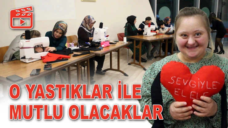 Özel gereksinimli birey anneleri tarafından yapılan, "Sevgiyle el ele" yastıkları, 3 Aralık Dünya Engelliler Günü'nde yine özel gereksinimli çocuklara hediye edilecek.