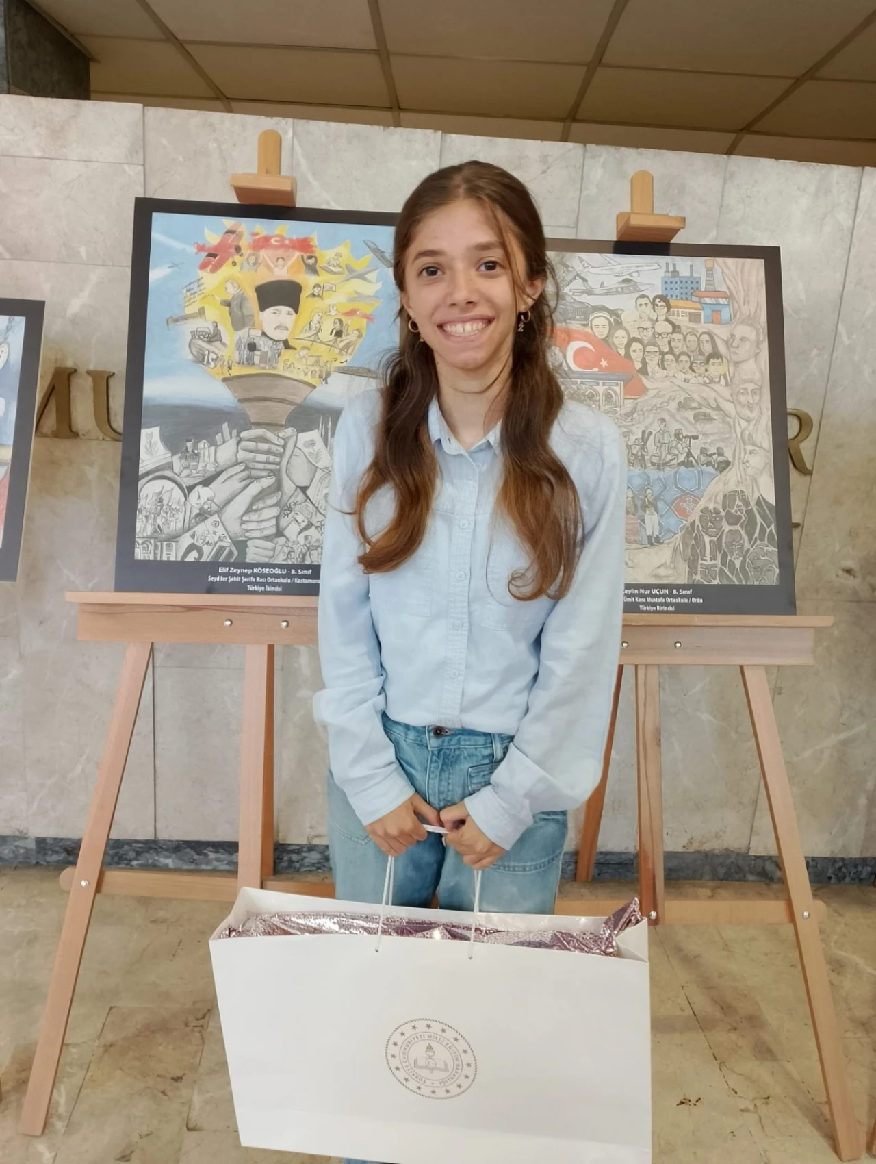 İl Milli Eğitim Müdürü Hasan Gümüş, yarışmada Türkiye derecesi elde eden öğrenciyi tebrik ederek; "Cumhuriyetimizin 102. yılı kutlamaları kapsamında ülke genelinde düzenlenen bu anlamlı yarışmada öğrencimizin Türkiye ikincisi olması bizleri son derece gururlandırdı. Bu başarı, hem öğrencimizin sanatsal yeteneğinin hem de öğretmenlerimizin rehberliğinin bir göstergesidir. Geleceğimizin teminatı olan gençlerimizin bu tür ulusal platformlarda göstermiş olduğu başarılar, eğitimdeki kararlılığımızı ve niteliği ortaya koymaktadır. Öğrencimizi ve emeği geçen öğretmenimizi gönülden kutluyor, başarılarının artarak devam etmesini diliyorum" dedi.