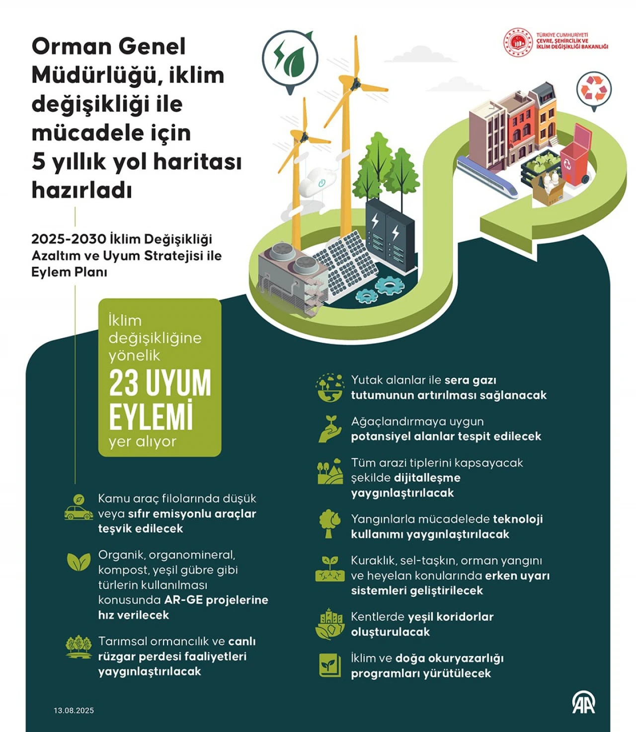 Tarım ve Orman Bakanlığına bağlı Orman Genel Müdürlüğü (OGM), iklim değişikliğinin olumsuz etkilerinin en aza indirilmesi için 5 yıllık yol haritası oluşturdu.