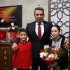 24 Kasım Öğretmenler Günü dolayısıyla Özel Bireyler ve Aileleri Derneği Başkanı Huriye Boyraz, Müdürlük personeli Cengizhan Boyraz, Şehit Şerife Bacı Ortaokulu öğrencilerinden Zeynep Nur Karabıyıkoğlu ve Kuzeykent İlkokulu öğrencilerinden Muhammet Enes Karabıyıkoğlu, İl Millî Eğitim Müdürü Hasan Gümüş’ü makamında ziyaret etti.