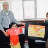 Resme olan ilgisi ve yeteneğiyle ilçede dikkat çeken Ali, kendi yaptığı anlamlı resmi ve Türk Bayrağını Ayşe Tuba Uçar'a eşine hediye ederek büyük bir mutluluk yaşattı.