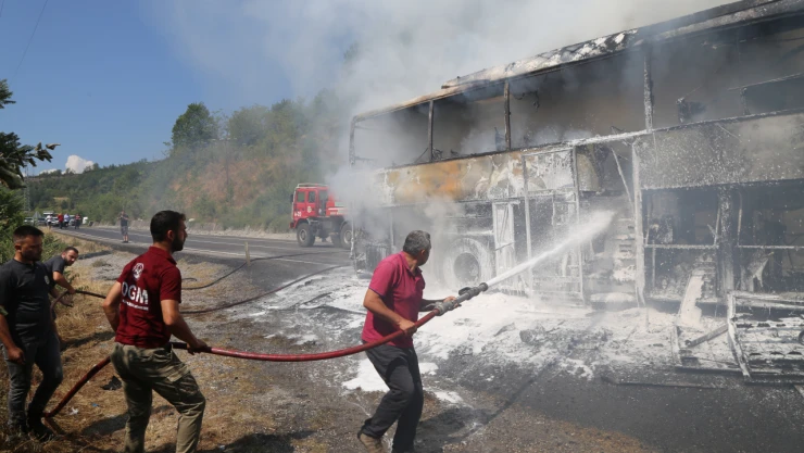 Yolculardan Mehmet Ön, şoförün Küre’de bir sorun olduğu için otobüsü durdurup inceleme yaptığını, ardından yollarına devam ettiklerini söyledi. İnebolu'ya yaklaştıklarında şoförün aynadan yangını gördüğünü belirten Ön, "Arabayı durdurdu ve kapıyı açtı. Biz de otobüsten çıktık. 15 saniye sonra araç alev aldı. Ben arka koltuklarda oturuyordum" dedi.