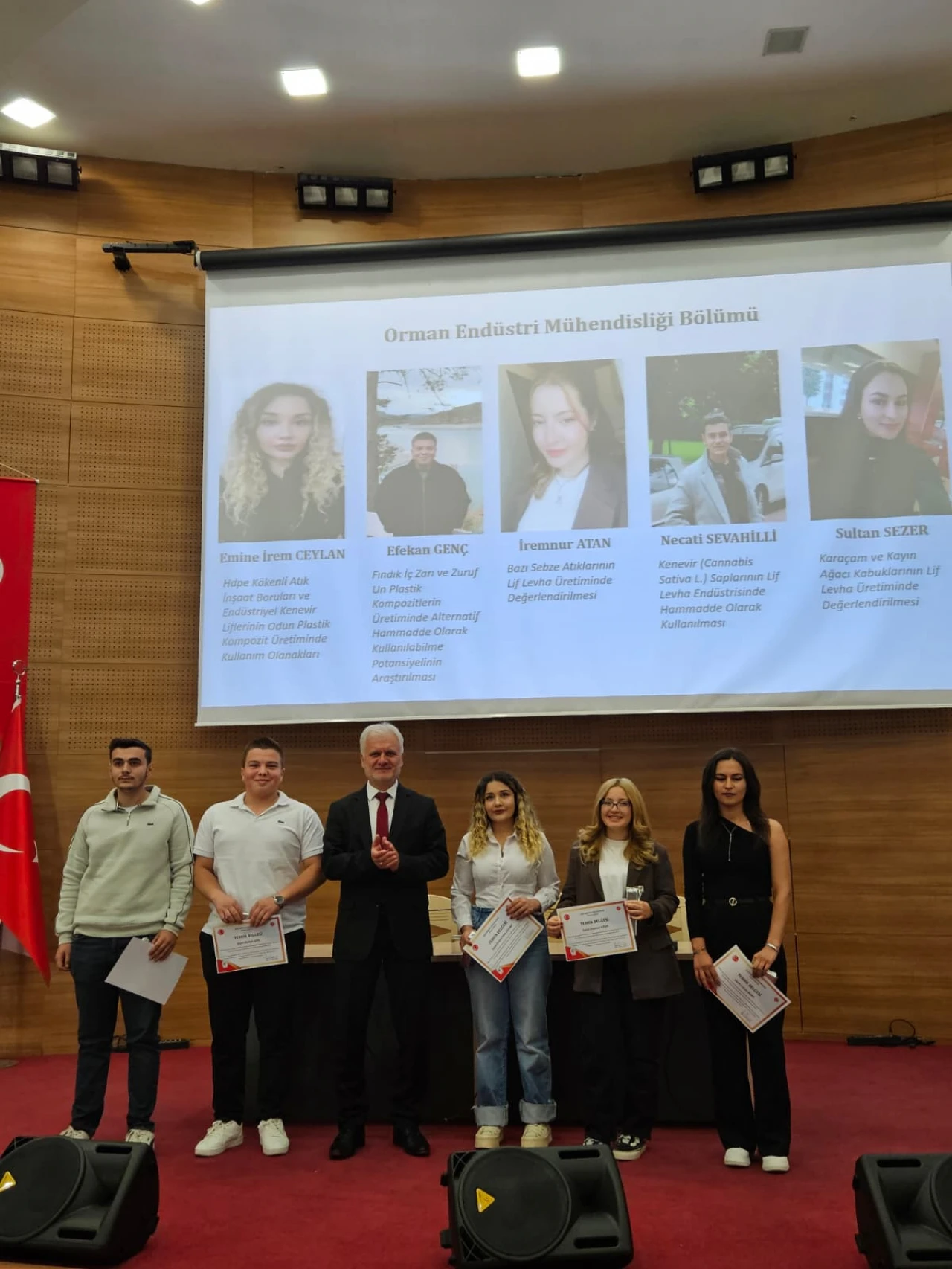 Ayrıca, 2025 yılında TÜBİTAK 2209 A/B projeleri kabul edilen fakülte öğrencilerine tebrik belgeleri ve hediyeleri sunuldu. Tören, toplu fotoğraf çekimi ile sona erdi.