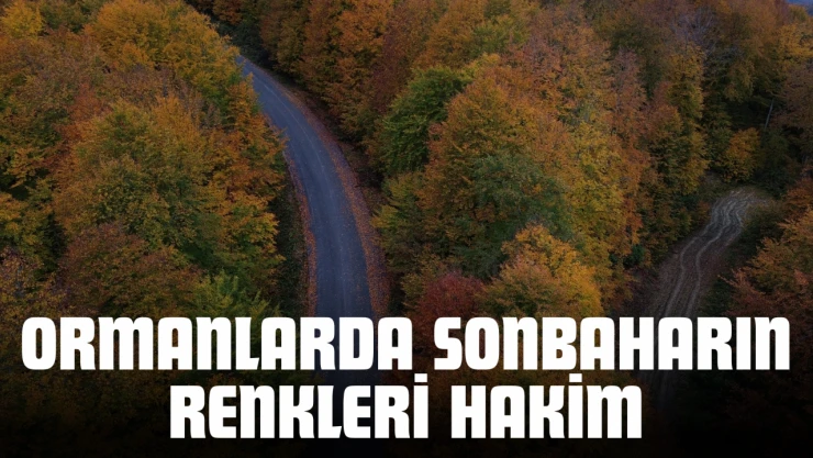 Sonbaharla birlikte farklı renk tonlarına bürünen ormanlar dron ile görüntülendi.