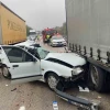 Bolu'da tıra çarpan otomobilin hurdaya döndüğü kazada otomobil sürücüsü ağır yaralandı.