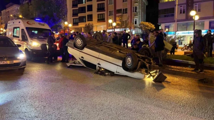 Otomobilin Devrildiği Kaza Anı Güvenlik Kamerasında