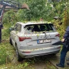 Zonguldak'ın Çaycuma ilçesinde park halindeki bir otomobilin üzerine ağaç devrildi.
