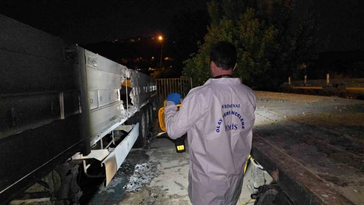 Yangında tır dorseleri zarar görürken, olay yeri inceleme ekipleri alanda çalışma başlattı.
