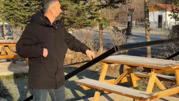Karabük'te Eskipazar ilçe Belediye Başkanı Serkan Cıva mesire alanındaki mangal ve oturma alanlarına zarar verilmesine tepki gösterdi.