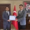 Kaymakam Karaselvi, makamında gerçekleşen törende Recep Ertürk’e belgesini takdim ederek, başarılarının devamını diledi.