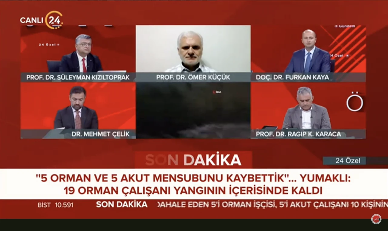 Bu kapsamda Rektör Yardımcısı Prof. Dr. Ömer Küçük, farklı televizyon kanallarında katıldığı programlarda orman yangınlarının çıkış nedenleri, alınması gereken önlemler ve Türkiye’nin yangınlarla mücadeledeki kapasitesi hakkında önemli açıklamalarda bulundu.