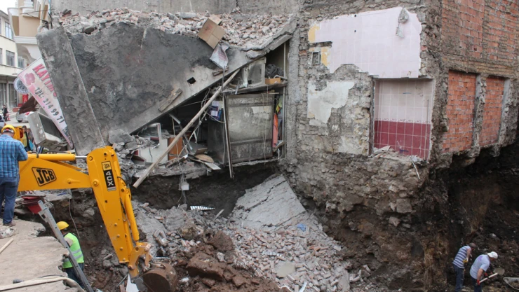 Hepkebirler Mahallesi Mahkeme Altı Sokak’ta yer alan bir iş yeri dün sabaha karşı toprak kayması sebebiyle yanındaki boş araziye doğru yıkıldı. Edinilen bilgiye göre; Hepkebirler Mahallesi Mahkeme Altı Sokak’ta Suat Mahmutoğlu’nun sahibi olduğu Kayımo Et adlı tek katlı işletme dün sabaha karşı büyük bir gürültü ile çöktü. İddialara göre yan tarafında inşaat çalışması olan binanın altında toprak ilimizde etkisini gösteren yağmur ile yumuşadı. Yumuşağın toprağın dün sabah heyelana sebep olmasından dolayı bina yanındaki boş araziye doğru hareketlenerek yıkıldı. Olayın sabah ilk saatlerinde meydana gelmesi yaşanan talihsiz olayın şansı olarak yansıdı. Sabahın erken saatlerinde yıkılan dükkanda ve çevresinde kimse olmadığından herhangi bir can kaybı yaşanmadı. Olaydan sonra dükkanına gelen Mahmutoğlu büyük bir şok yaşadı. Mahmutoğlu zararının büyük olduğunu ama yetkililerin zararını karşılayacağını söyledi. Olaydan sonra yetkililer binanın bulunduğu sokakta geniş güvenlik önlemleri alırken, ekipler hafriyat kaldırma çalışmalarına başladı.
