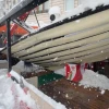 Karabük'ün Safranbolu ilçesinde kar ağırlığını kaldıramayan bazı iş yerlerinin çatıları ile tenteneleri çöktü.