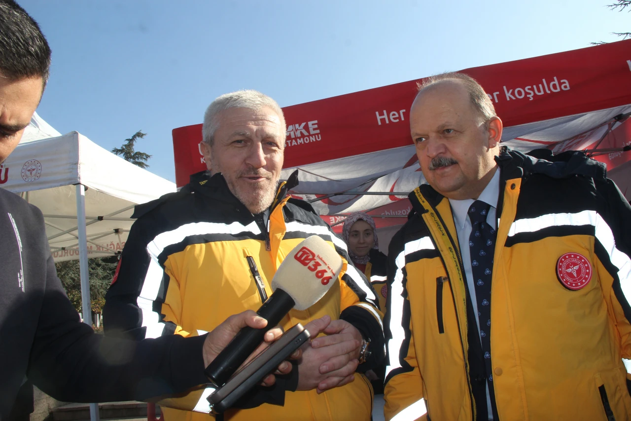 Programda bilgilendirmede bulunan İl Sağlık Müdürü Fevzi Yavuzyılmaz; “Ambulansımız geldi. Onları da yeni görev yerlerine uğurlayacağız. Biz kilometrelerine ve yıllarına göre bir planlama yaptık. Bir tane Cide’ye veriyoruz, bir tane Pınarbaşı'na veriyoruz, bir tane Azdavay’a veriyoruz, bir tanesini de Araç ilçesine veriyoruz. Ama daha beklediğimiz araçlarımız var, inşallah geldikçe filomuzu gençleştirip diğerlerini yedek ambulans şeklinde tutuyoruz. Bu şekilde bir programa teşrif ettiniz, Allah razı olsun. Yeni geçen ay atananlar var; işte geçen hafta ve bu hafta başladılar. Ama yeni grupta bizim iki ayda bir atamamız oluyor. İnşallah önümüzdeki ay tekrar olacak. Acil Sağlık Hizmetleri Haftası 1-7 Aralık tarihleri arasında kutlanıyor. Sayın Valim, 43 istasyonumuz var. Özellikle ambulanslarımızla beraber, 65+4 araçla birlikte toplam 69 ambulansımız oldu. Bu yıl, 11 ayda 43 bin vatandaşa ulaştık; 43 bin hasta taşıdık. Ve bu yıl içinde sadece ambulanslarımız 3 milyon 70 bin kilometre yol yaptı. Bu çok yüksek bir rakam. İlimizin coğrafyası da bunu gerektiriyor. Bizim il merkezinde 10 dakika, kırsalda ise 30 dakika sınırımız var. İl merkezindeki 10 dakika sınırını yüzde 95’in üzerinde tutturuyoruz. Merkeze bağlı bazı köylerimizden dolayı küçük sapmalar olabiliyor ama yine de yüzde 95’in üzerindeyiz. Kırsalda da yüzde 80’lerin üzerindeyiz. İnşallah daha iyi noktalara gelmesi için çalışıyoruz. Paletli ambulansımız var, dört çarpı dört ambulansımız var. Burada vatandaşımıza sergiliyoruz. Malum, kış bölgemizde yoğun geçiyor. Bunun için yedi yirmi dört tüm şartlarda hizmet etmeye çalışıyoruz, Sayın Valim. Teşekkür ederim. Sağ olun” dedi.
