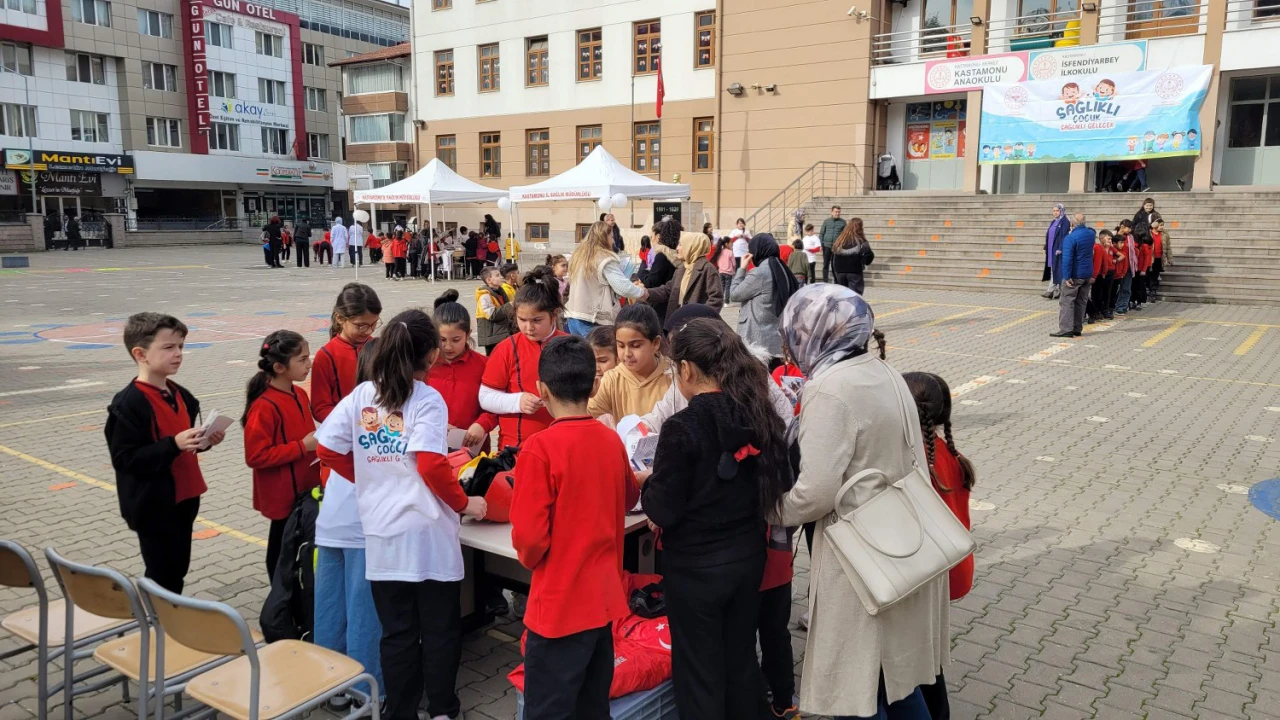 İsfendiyarbey İlkokulu'nda İl Sağlık Müdürlüğü, Merkez Toplum Sağlığı Merkezi ve Acil Sağlık Hizmetleri personelleri tarafından 'Sağlıklı çocuk, sağlıklı gelecek etkinliği' düzenlendi.