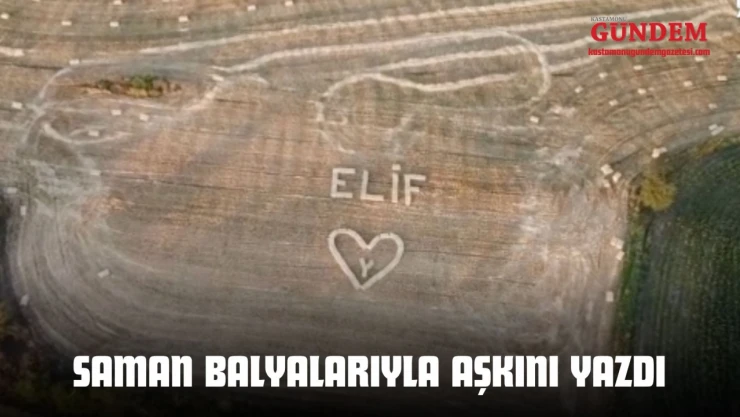 Kastamonu'nun Taşköprü ilçesine bağlı Afşar köyünde yaşayan çiftçi Yusuf Koca, saman balyaları ile tarlanın ortasına eşinin ismi olan 'Elif' yazarak kalp şekli oluşturdu.