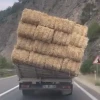 Edinilen bilgiye göre, Karabük-Zonguldak kara yolunda seyreden bir kamyonun dorsesine yüklenen saman balyalarının dengesiz ve aşırı yüklü olduğu görüldü. Yükün ağırlığı nedeniyle sağa doğru eğilen kamyon, trafikteki diğer sürücülerde tedirginliğe yol açtı.