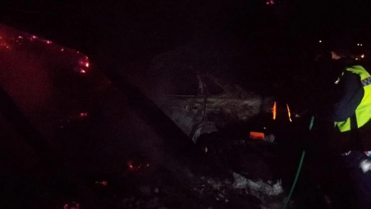 Yangında, içinde yaklaşık 70 adet balya samanın bulunduğu samanlık ile otomobil kullanılamaz hale geldi.