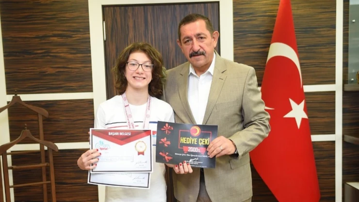 Edirne'de düzenlenen Okul Sporları Yüzme Küçükler Türkiye Şampiyonası'nda iki farklı dalda şampiyonluk kazanan, Bahçeşehir Koleji öğrencisi İdil Bilgici, Belediye Başkanı Rahmi Galip Vidinlioğlu'nu ziyaret etti.