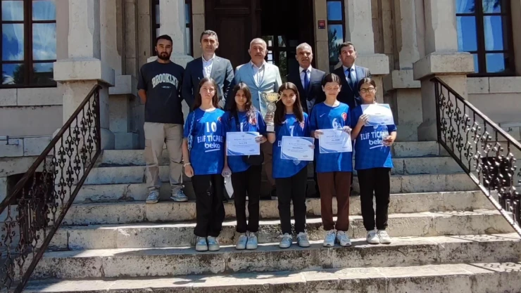 Aydın'da düzenlenen 2023-2024 Küçük Kızlar Bocce Türkiye Şampiyonası'nda Türkiye şampiyonu olan İğdir Ortaokul öğrencileri Araç Belediye Başkanı Süleyman Yazkan'ı ziyaret etti.