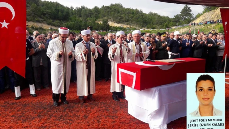Mardin’in Midyat ilçesinde PKK’lı teröristlerin bombalı araçla Emniyet Müdürlüğü’ne yaptıkları saldırı esnasında şehit düşen ve 6 aylık hamile olan 31 yaşındaki Polis Memuru Şerife Özden Sütçü Kalmış için memleketi Araç’ta tören düzenlendi. Şehidin Türk bayrağına sarılı cenazesi, Mardin’den uçakla Kastamonu Havalimanı’na getirildi. Şehidin cenazesini protokol üyeleri ile Emniyet Müdürü Mustafa Yoldan, Belediye Başkanı Tahsin Babaş, şehidin yakınları ile çok sayıda vatandaş karşıladı. Şehit cenazesi havalimanına indiğinde gözyaşları sel oldu. Cenaze, havalimanında oluşan uzun konvoy eşliğinde karayolu ile Araç’a götürüldü. Burada şehidin cenazesi, baba ocağına götürülerek helallik alındı. Cenaze daha sonra, Vali Enes Yeter Stadı’na götürüldü. Binlerce vatandaşın katıldığı cenaze töreninde ilk olarak helallik istendi. Cenaze namazını şehit polisin din görevlisi olan kayınpederi kıldırdı. Şehit Polis Şerife Özden Kalmış’ın eşi Hüseyin Kalmış eşinin yastığını bir an olsun yanından ayırmadı. Polis memuru acılı koca Hüseyin Kalmış tören sonuna kadar yastığa ve tabuta sarılarak gözyaşı döktü. Kılınan cenaze namazının ardından şehit eşi Hüseyin Kalmış ile şehidin babası İsmail Sütçü, şehidin ağabeyleri Recep Sütçü, İsmail Sütçü ve Ali Aykut Var, şehidin tabutuna sarılarak gözyaşı döktü. Şehit yakınları, görevliler tarafından sakinleştirilmeye çalışıldı. Cenaze törenine Büyük Birlik Partisi (BBP) Genel Başkanı Mustafa Destici, Dışişleri eski Bakanı Murat Başesgioğlu, AK Parti Milletvekili Metin Çelik, Jandarma Bölge ve Garnizon Komutanı Tuğgeneral Faruk Bal, Belediye Başkanı Tahsin Babaş, İl Emniyet Müdürü Mustafa Yoldan, kurum ve kuruluş amirleri, ilçe belediye başkanları, siyasi parti temsilciler, STK temsilcileri, il dışından gelen vatandaşlar ile Kastamonulular katıldı.