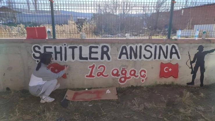 Çorum'un Sungurlu İlçesi'nde, fen lisesi öğrencileri 12 şehit için 12 fidan diktiler.