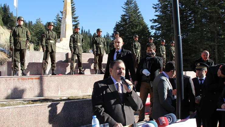 Açılış ve toplantı programlarını gerçekleştirmek üzere ilimize gelen, Orman ve Su İşleri Bakanı Prof. Dr. Veysel Eroğlu Milli Park Derbent Şehitliği açılışını yaptı. Açılış Programına, Orman ve Su İşleri Bakanı Prof. Dr. Veysel Eroğlu, Vali Şehmus Günaydın, Çankırı Valisi Vahdettin Özcan, AK Parti Milletvekilleri Metin Çelik, Murat Demir, Doğa Koruma ve Milli Parklar Genel Müdürü Nurettin Taş, Meteoroloji Genel Müdürü İsmail Güneş, Orman Genel Müdürü İsmail Üzmez, çevre illerden gelen kaymakamlar, belediye başkanları, Türkiye Harp Malulü Gaziler, Şehit Dul ve Yetimleri Derneği Şube Başkanı Berat Satıoğlu, şehit aileleri ve gaziler ile sivil toplum temsilcileri katıldı. “BÜTÜN ŞEHİTLERİMİZİ SAYGIYLA SELAMLIYORUM” Derbent Şehitliği’nin tarihçesi hakkında bilgi verildikten sonra konuşan Orman ve Su İşleri Bakanı Prof. Dr. Veysel Eroğlu; “1921 yılında İstiklal Harbi olduğunda burada cephanelik, mühimmat sevki için önemli bir nokta olmuştur. Düşmanlar burayı ele geçirmek için uğraştılar ve buradaki 5 Mehmetçik toprağa düştü, ruhları şad olsun. Tabii ki bunların aziz hatıralarını ilelebet yaşatacağız çünkü bu vatan kolay kurtulmadı İstiklal Harbi kolay kazanılmadı nice canlar toprağa düştü bu vatan öyle bir vatan ki her karış toprağı şehit kanlarıyla yoğrulmuştur. Bütün şehitlerimizi saygıyla selamlıyorum, ruhları şad olsun onların isimlerini ilelebet yaşatacağız. Bu şanlı bayrak bu topraklarda ilelebet dalgalanacaktır. Şehitlerimizin aziz hatıralarına, Kastamonu Ilgaz yolundaki abide 1957 yılında kuruldu. Şehitlerin ruhlarına Fatiha okuması, hem dinlenmesi, güzel vakit geçirmesi, en azından geçmiş tarihimizi, genç nesillerin hatırlaması maksadıyla burası düzenlendi. Burası hem Kastamonu, hem de Çankırı’ya hitap ediyor. Bu yüzden iki Valimiz de burada, Belediye Başkanlarımıza, İl Genel Meclis Başkanlarımıza, Kaymakamlarımıza, diğer ilçe Belediye Başkanlarımıza gönülden teşekkür ediyorum. Gaziler ve şehit yakınları da burada, onlar daima başımızın tacıdırlar. Giden canın yerine hiçbir şeyin karşılığı olamaz ama en azından onları bağrımıza bastık, artık her şehit ailesi 76 milyonun kardeşidir” dedi. “TERÖRÜN KÖKÜNÜ KAZIYACAĞIZ” Program sırasında Diyarbakır’ın Sur ilçesinde şehit düşen Jandarma Uzman Çavuş Yaşar Yeniören’in bilgisini alan Bakan Eroğlu, şehit ailesine başsağlığı dileyerek; bölücü terör örgütü PKK'nın Türklerin olduğu kadar Kürtlerin de düşmanı olduğunu söyledi. Eroğlu konuşmasının devamında: “Bu şanlı bayrak bu topraklarda ilelebet dalgalanacak. Terörün kökünü kazıyacağız. Onları da tamamen süpürüp tamamen yok edeceğiz. PKK bazı ülkelerin maşası. Marksist, Leninist PKK Türklerin olduğu kadar Kürtlerin de düşmanıdır, böyle biline. Kahraman askerlerimiz ve emniyet teşkilatımız bunu tamamen bitirecek. Dağlar tamamen temizlendi. Şimdi bazı mahallelerde ve bazı şehirlerde yuvalanmışlar, onlar da temizlenecektir. Bu mücadele son terörist etkisiz hale getirilene kadar devam edecek. Bunda hükümetimiz, devletimiz, askerimiz ve emniyetimiz kararlıdır. Onlara düşen teslim bayrağını çekip teslim olmalarıdır. Dün olduğu gibi bugün de Mehmetçiğimiz vatan ve bayrak için canlarını ve kanlarını feda etmektedir. Bu vatanın her karış toprağı şehit kanı ile yoğrulmuştur. Bu nedenle ben 1071'den günümüze kadar şehit düşen ve şu anda Güneydoğu ve çeşitli yerlerde canlarını seve seve bu vatan için veren şehitlerimizi selamlıyorum. Ruhları şad olsun. Bugün de Çankırı'da bir şehidimizin haberi geldi, yüreğimizi dağladı. Bütün kederli ailesine başsağlığı diliyorum" diye konuştu. KURBANI BAĞIŞLADI Şehitliğe çelenk koyan Bakan Eroğlu daha sonra şehit yakınlarına karanfil takdim etti. Bakan Veysel Eroğlu, açılış sırasında hazır bekletilen kurbanın kesilmesine izin vermedi. Kurban kesmenin güzel bir düşünce olduğunu ancak ortamın kurban kesilmesine müsait olmadığını ifade eden Bakan Eroğlu; “Şehitliğimizde sadece bizler bulunmuyoruz. Burada küçük yavrularımız da yer alıyor. Çocuklarımızın gözü önünde kurban kesmenin uygun olmadığını düşünüyorum. O yüzden kurbanı kesmeyelim ve kurbanı nereye bağışlayacaksak oraya sağ olarak gönderelim" dedi. Kurbanı kesmek için yere yatıran kasabın elinden bıçağı alan Orman ve Su İşleri Bakanı Prof. Dr. Veysel Eroğlu, kurbanı severek hayvanlara karşı incitici davranışlardan kaçınılması gerektiğini uyarısını bir kez daha yineledi. Yapılan duaların ardından kurban Kastamonu'da Kur'an Kursu'nda öğrenim gören öğrencilere gönderildi.
