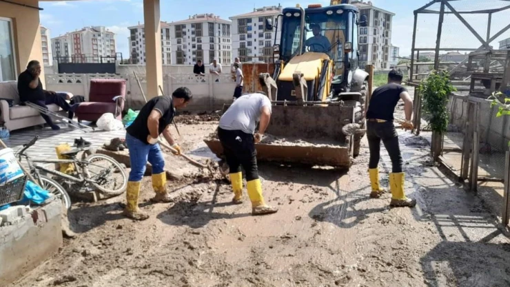 Çorum'un Alaca ilçesinde, son birkaç gündür etkili olan yağış ve sonrasında oluşan selin verdiği zararları gidermek için belediye ekipleri aralıksız çalışıyor.